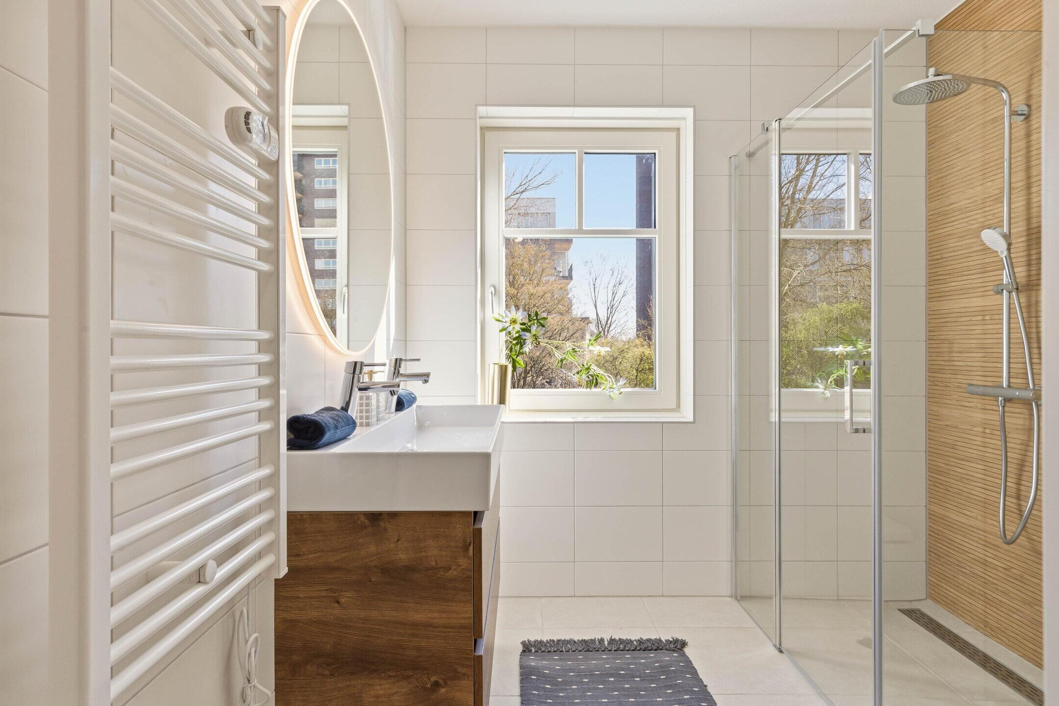 Hier vindt u nog twee volwaardige slaapkamers en een tweede luxe badkamer met ligbad, inloopdouche en dubbele wastafel. Ideaal voor grotere gezinnen of gasten. Het toilet op deze verdieping is separaat en toegankelijk vanuit de hal.