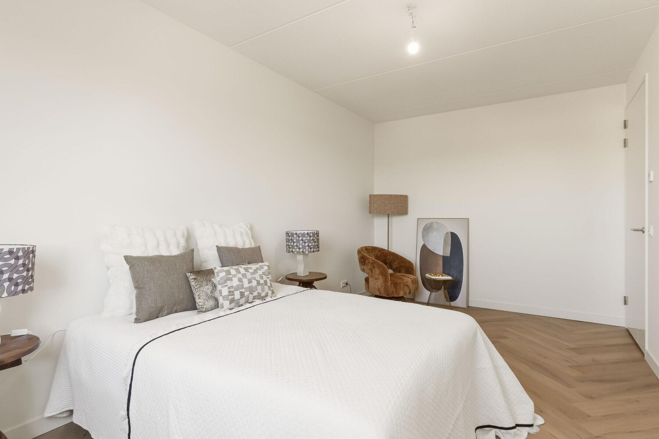 Op deze verdieping bevinden zich twee ruime slaapkamers. De hoofdslaapkamer beschikt over een luxe garderobekast met soft-close systeem. De luxe badkamer is voorzien van een douche, dubbele wastafel en toilet.