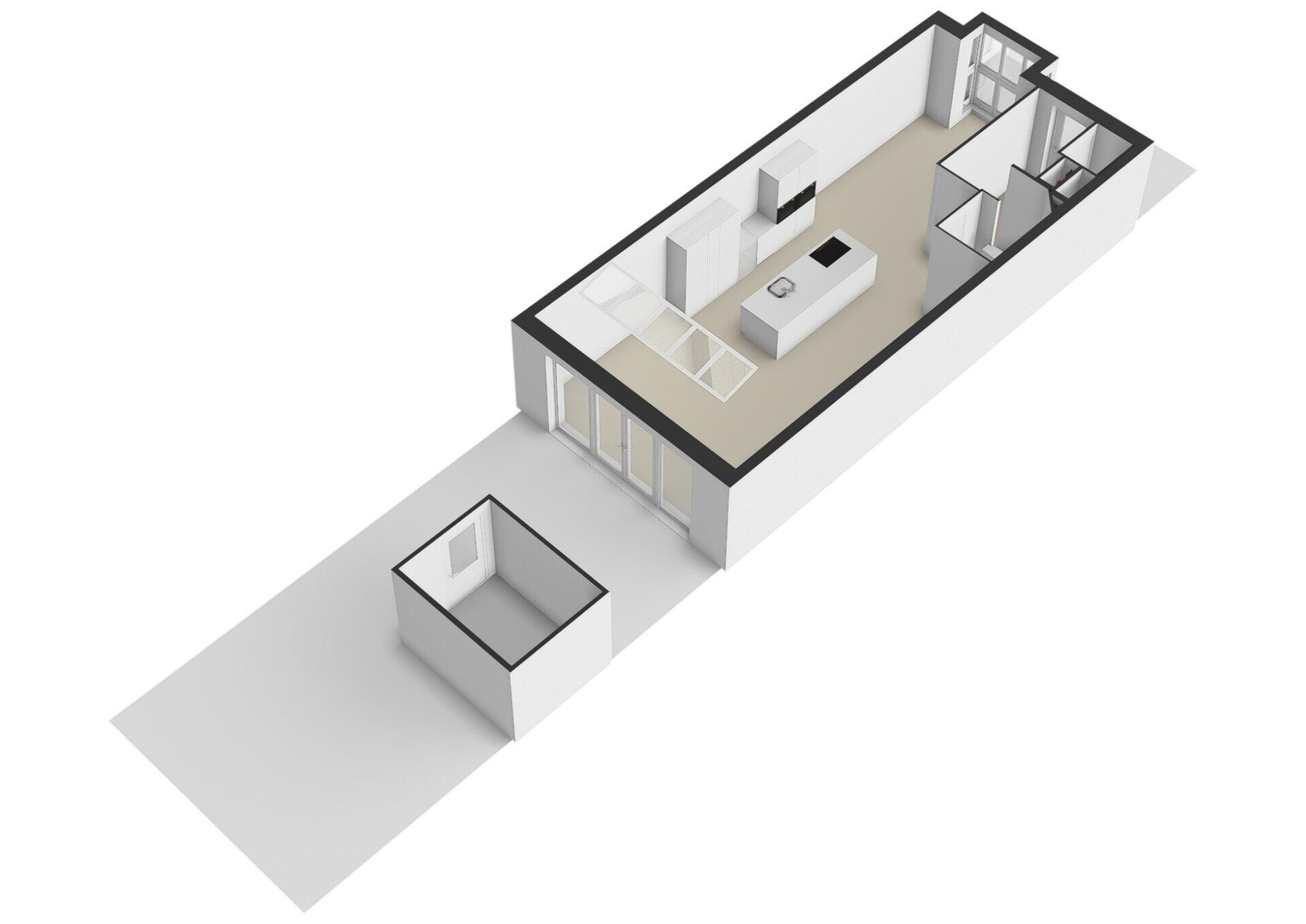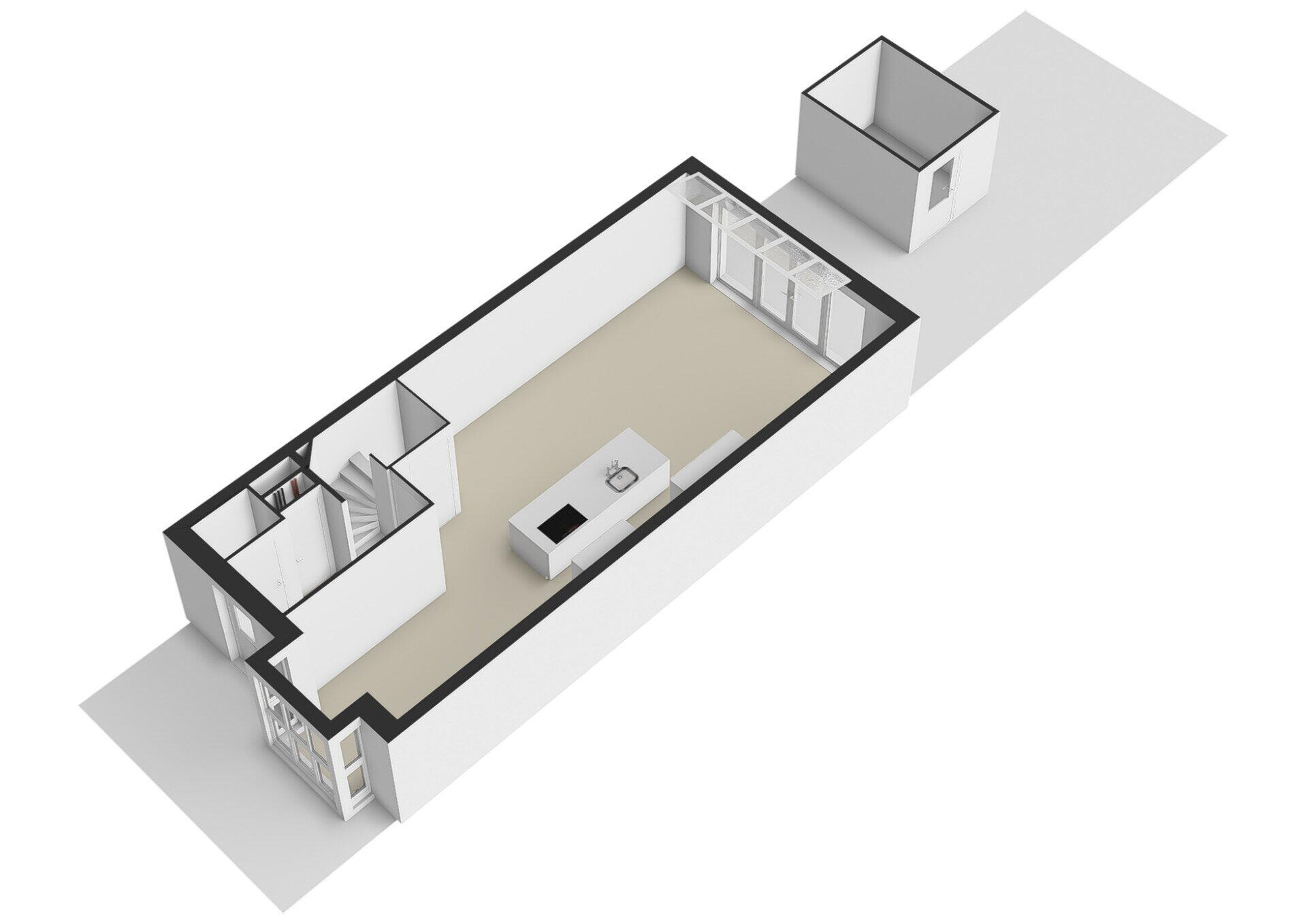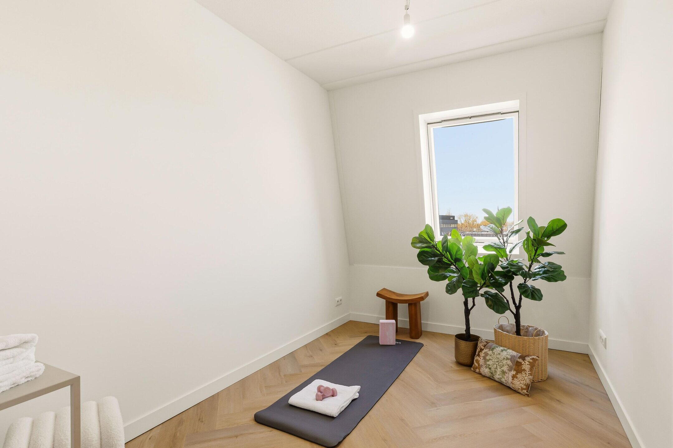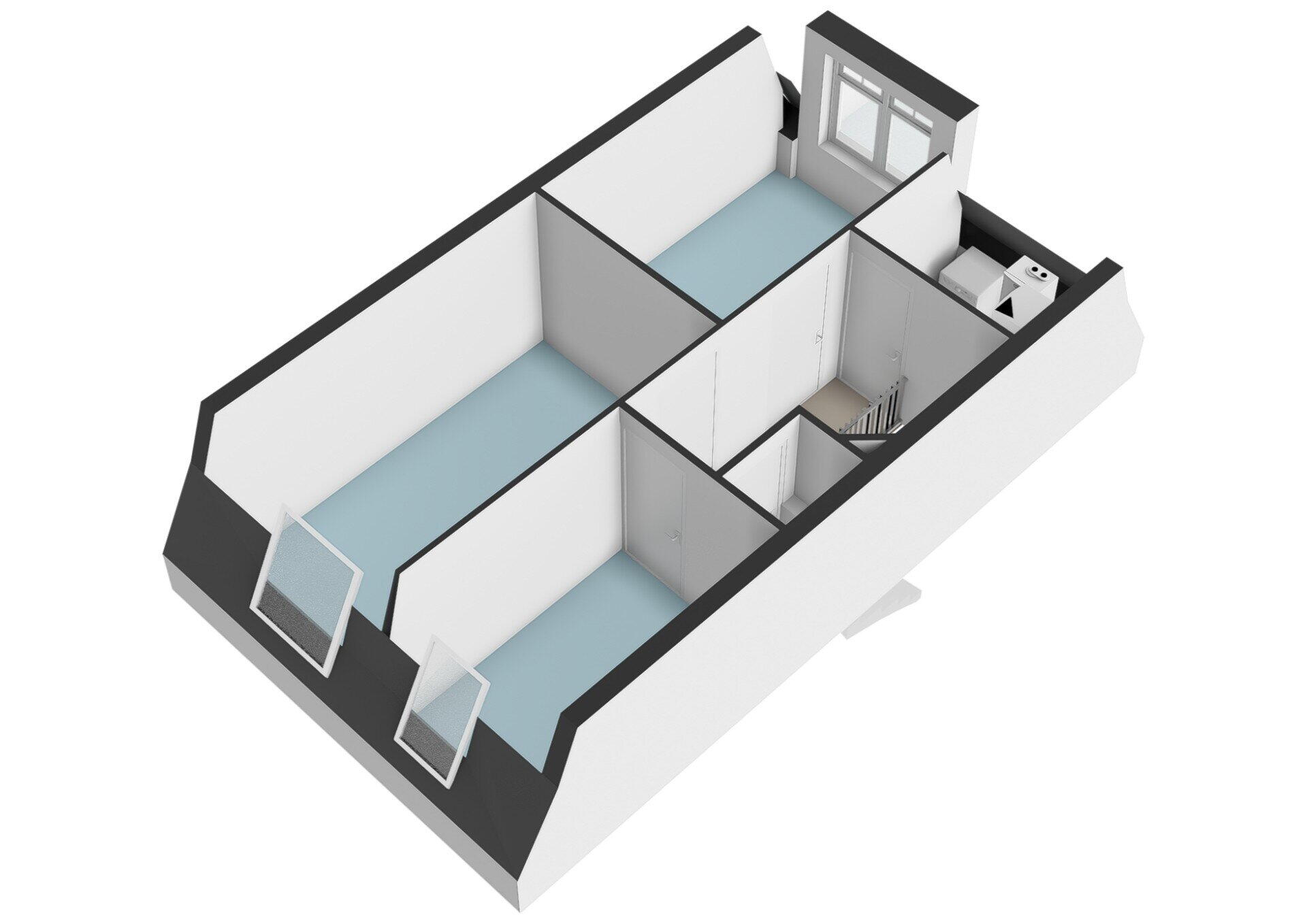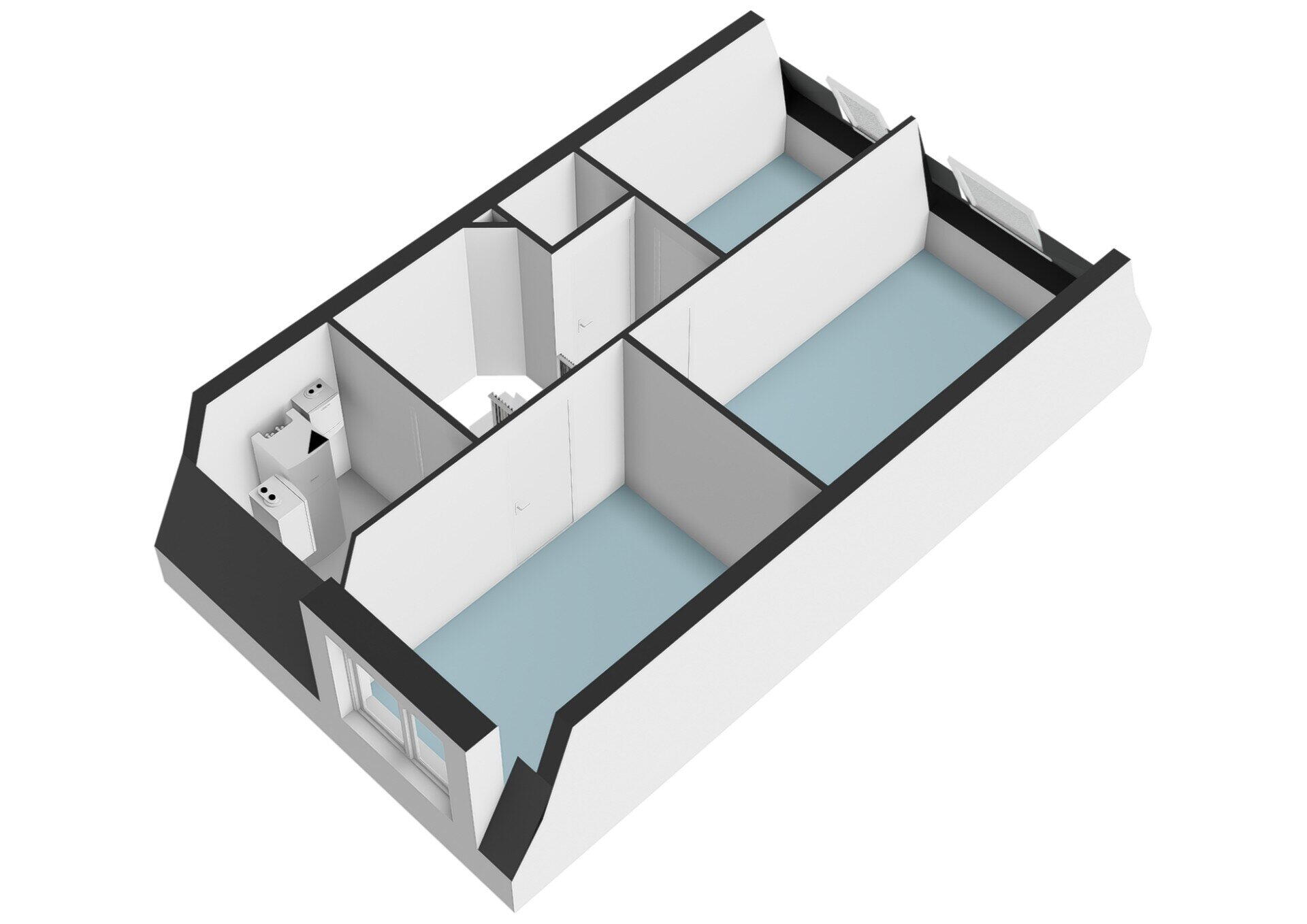 Daarnaast bevindt zich hier één praktische ruimte waarin de technische installaties, wasruimte en bergruimte gecombineerd zijn. Dit zorgt voor een efficiënte en overzichtelijke indeling.