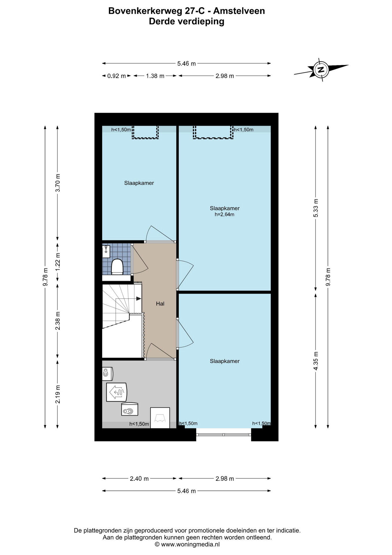 De meting is uitgevoerd door een professioneel en betrouwbaar bedrijf. Koper vrijwaart verkoper en diens makelaar voor eventuele afwijkingen in de opgegeven maten en verklaart in de gelegenheid te zijn gesteld de woning zelf (of door een deskundige) te laten nameten conform NEN 2580.